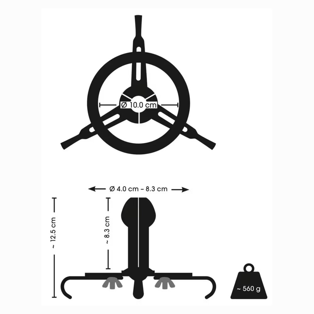 Ukupna dužina 12,5 cm, dužina umetanja 8,3 cm, Ø 4 cm–8,3 cm, Ø prstena (unutrašnji) 10 cm.