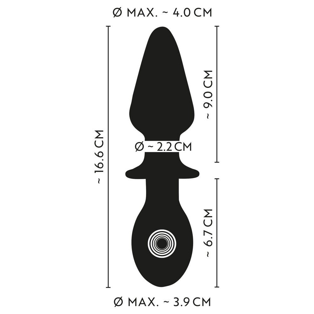 Lepo oblikovan dvostrani plag sa vibracijom od ANOS-a, napravljen je od visokokvalitetne mešavine materijala koji kombinuje sve prednosti silikona i staklenog vibracionog plaga. Može se koristiti analno sa obe strane: jedna strana sa zaobljenim svilenkasto mekim silikonskim čepom, druga strana čvrstim, glatkim staklenim čepom. Konusni centar ima široki graničnik koji bezbedno sprečava klizanje plug-a.