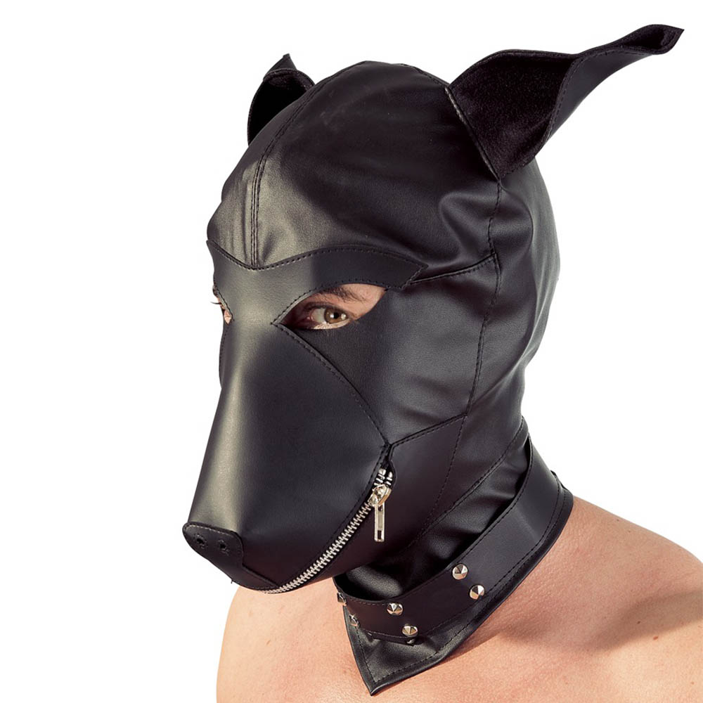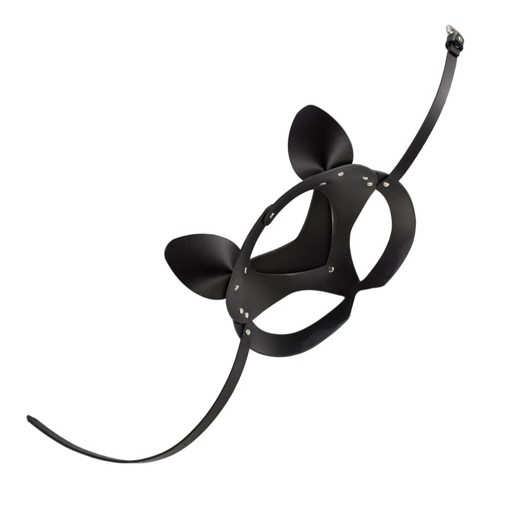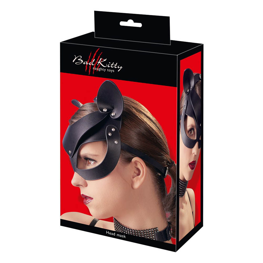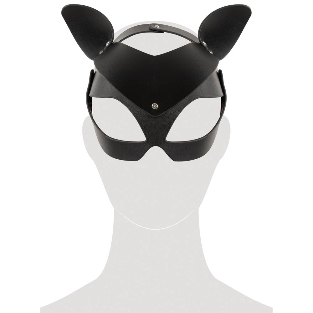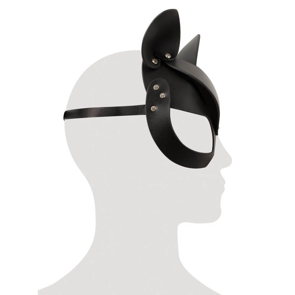 Čvrsta maska od imitacije kože sa senzualnim mačjim ušima i malim zakovicama od štrasa.
