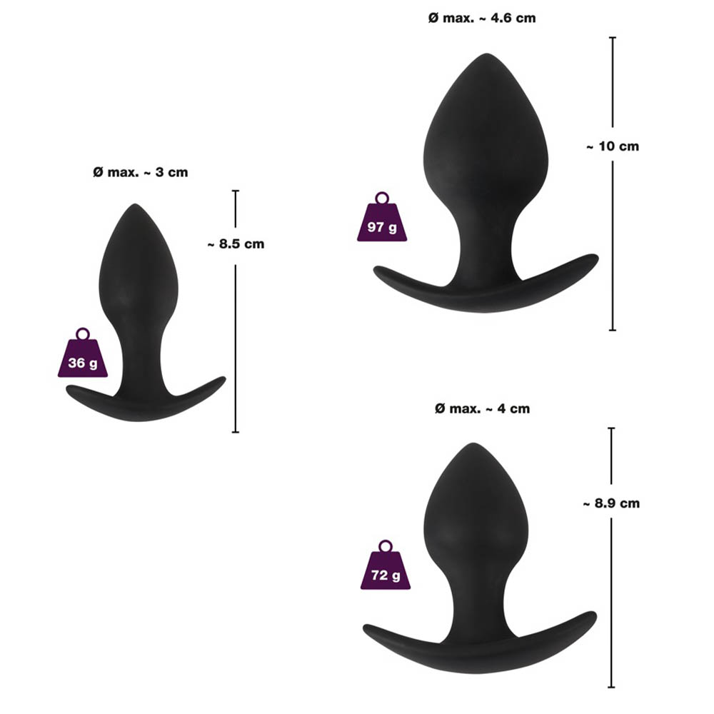 Različite veličine su savršene za postepeni analni trening. Plagovi se izuzetno lako ubacuju zbog svog konusnog oblika i pružaju fantastican osećaj.