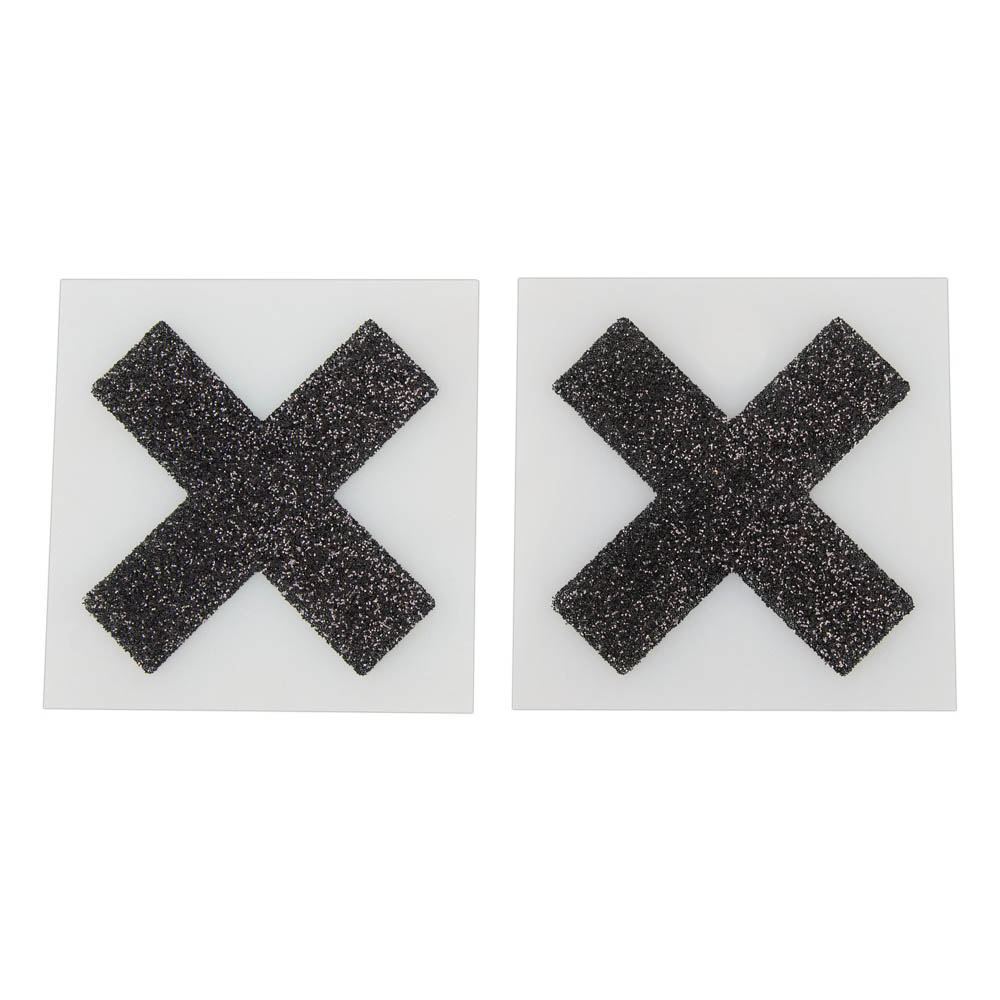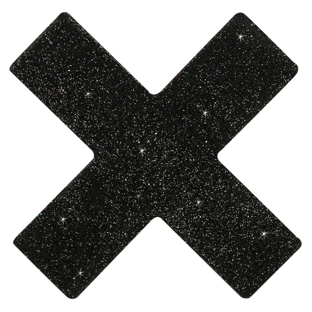 Sjajne, crne, nalepnice za bradavice u obliku krsta.