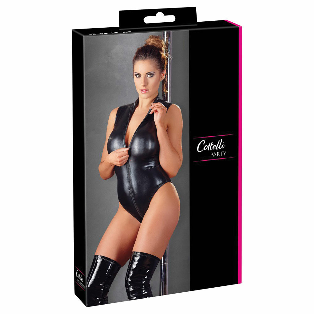 Ovaj seksi, crn, bodi, napravljen je od sjajnog materijala, sa kratkim rukavima, za žene koje vole da istaknu svoje telo.