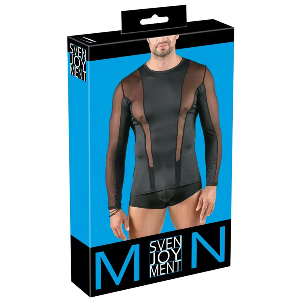 Naglašena crna majica iz Svenjoyment-a ima duge rukave i napravljena je od stilske kombinacije providne mreže i rastegljivog neprozirnog materijala. Rastegljiva majica seksi prianja uz telo na mekan i udoban način.
