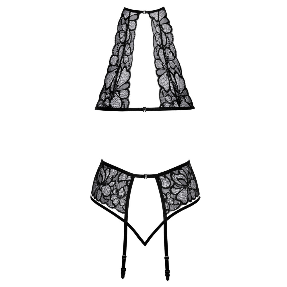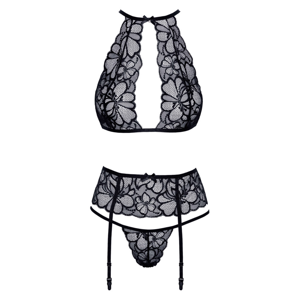Ovaj crni čipkani set veša sa halterima i halter grudnjakom je idealan za posebne prilike ili kada želite da se osećate ženstveno, moćno i samouvereno. Dodajte ga svojoj kolekciji i istaknite svoju prirodnu lepota.
