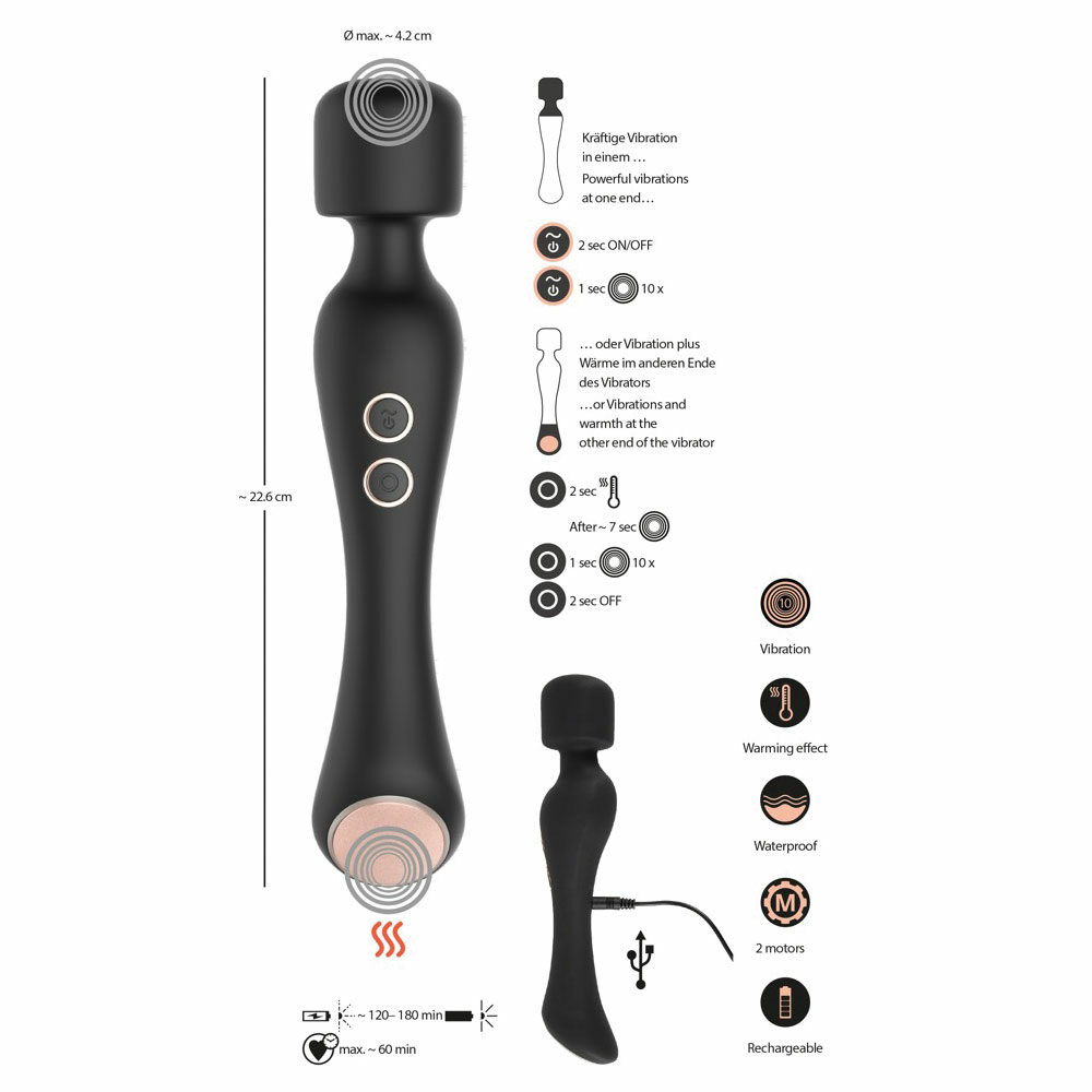 Oba kraja masažnog vibratora Warming Wand Vibrator iz Cupa se mogu koristiti za raznovrsne masaže, po celom telu ili za stimulaciju.