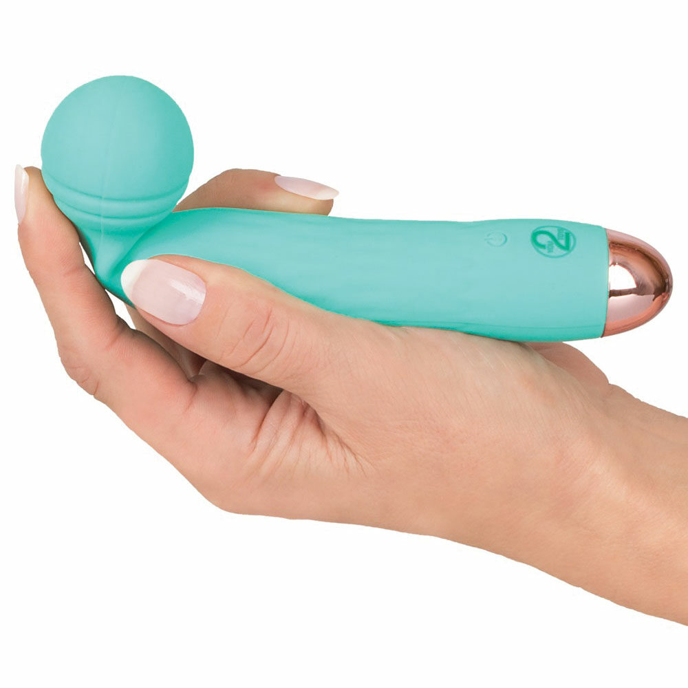 Zeleni mini vibrator, sa uzbudljivom žljebljenom teksturom, na fleksibilnoj glavi.