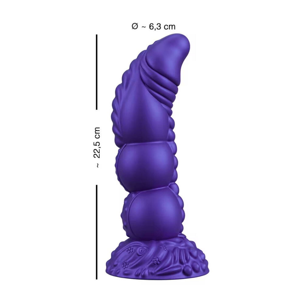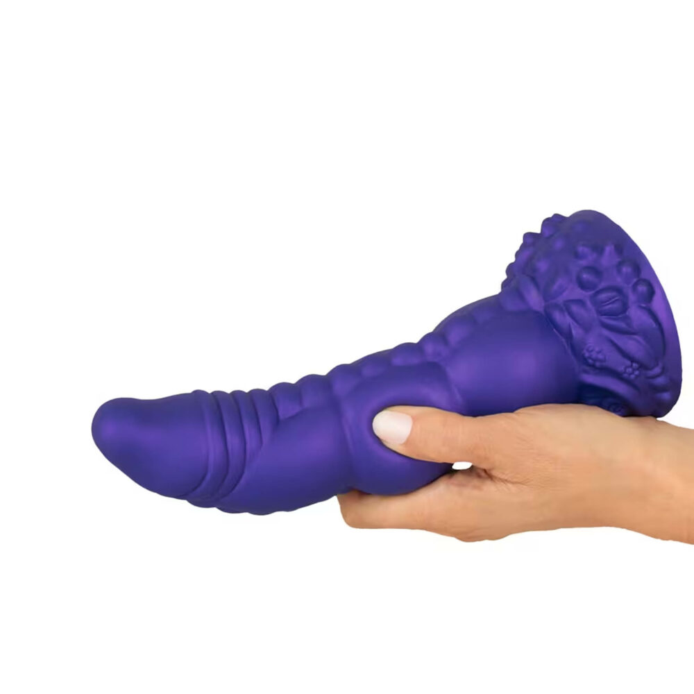 Dildo Demon desire iz Beasti Cocks od Iou2Tois nije samo uzbudljiv mistični privlačan pogled sa svojim maštovitim dizajnom penisa u metalik izgledu, već je i izuzetno ispunjavajući vladar zadovoljstva, zahvaljujući svojim stimulativnim teksturama koje oduzimaju dah! Može da se zalepi za bilo koju glatku površinu sa svojom velikom usisnom čašom, što ga čini savršenim za igru bez ruku. Takođe se može koristiti sa naramenicama, zahvaljujući usisnoj čaši.