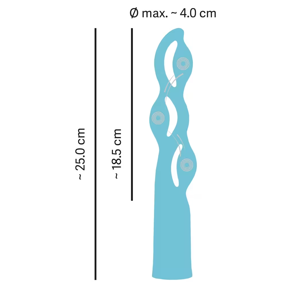 | Ekstravagantni vibrator Fabulous kompanije You2Toys, u izvanrednom dizajnu. 3 moćna tiha motora su smeštena u stimulativnim krivinama, od kojih svaki pruža 7 intenzivnih režima vibracije. Poseban režim je u kome se vibracije automatski prebacuju napred i nazad između motora. Fantastičan i trenažni efekat! Režimi se mogu lako kontrolisati po želji direktno na igrački pritiskom na dugme. Vodootporan. Sa svojom svilenkasto mekom površinom, lako se ubacuje i klizi kao da je malo fleksibilan i optimalno se prilagođava telu i igri. Punjivo – USB kabl za punjenje je uključen. Ukupna dužina 25 cm. Dužina umetanja 18,5 cm, Ø mak. Težina 139 g. Silikon, PU, ABS. |