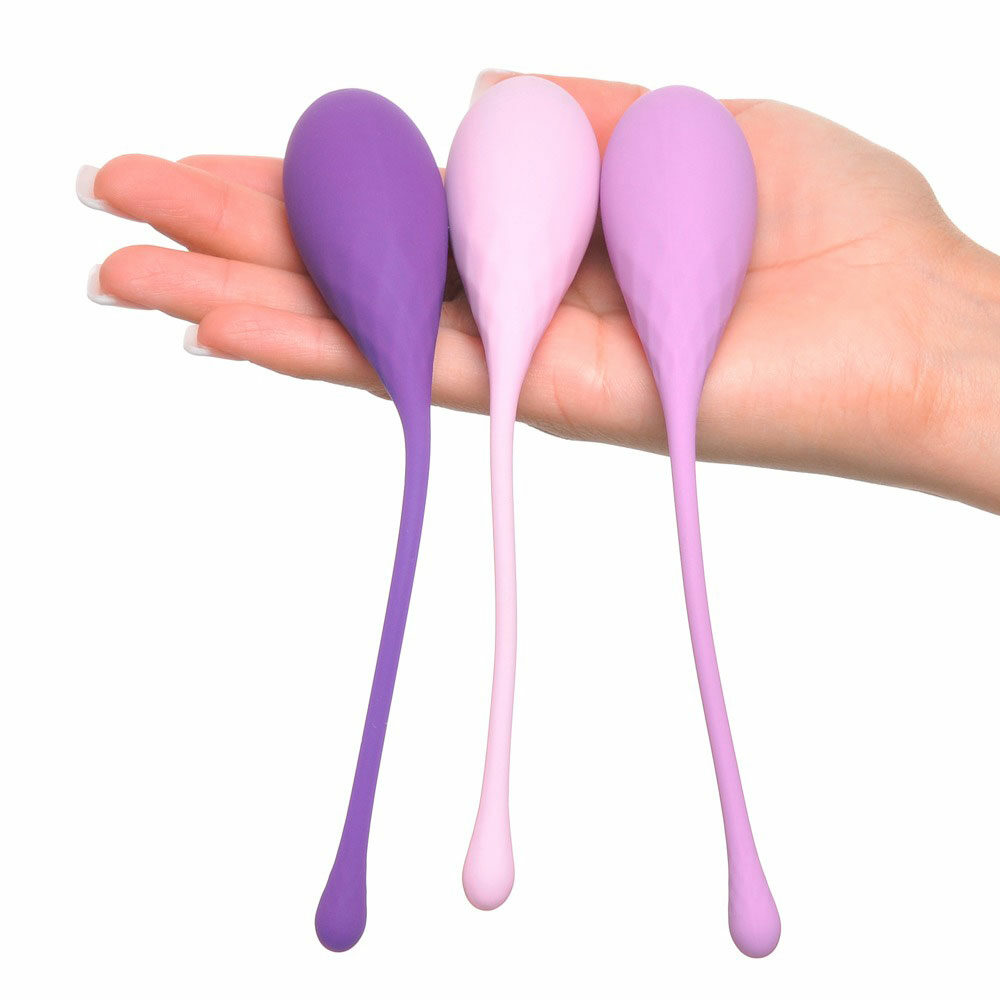 3 mini tegica u obliku kapljica sa rastezljivom trakom za izvlačenje – savršene su za efikasan trening dna karlice.