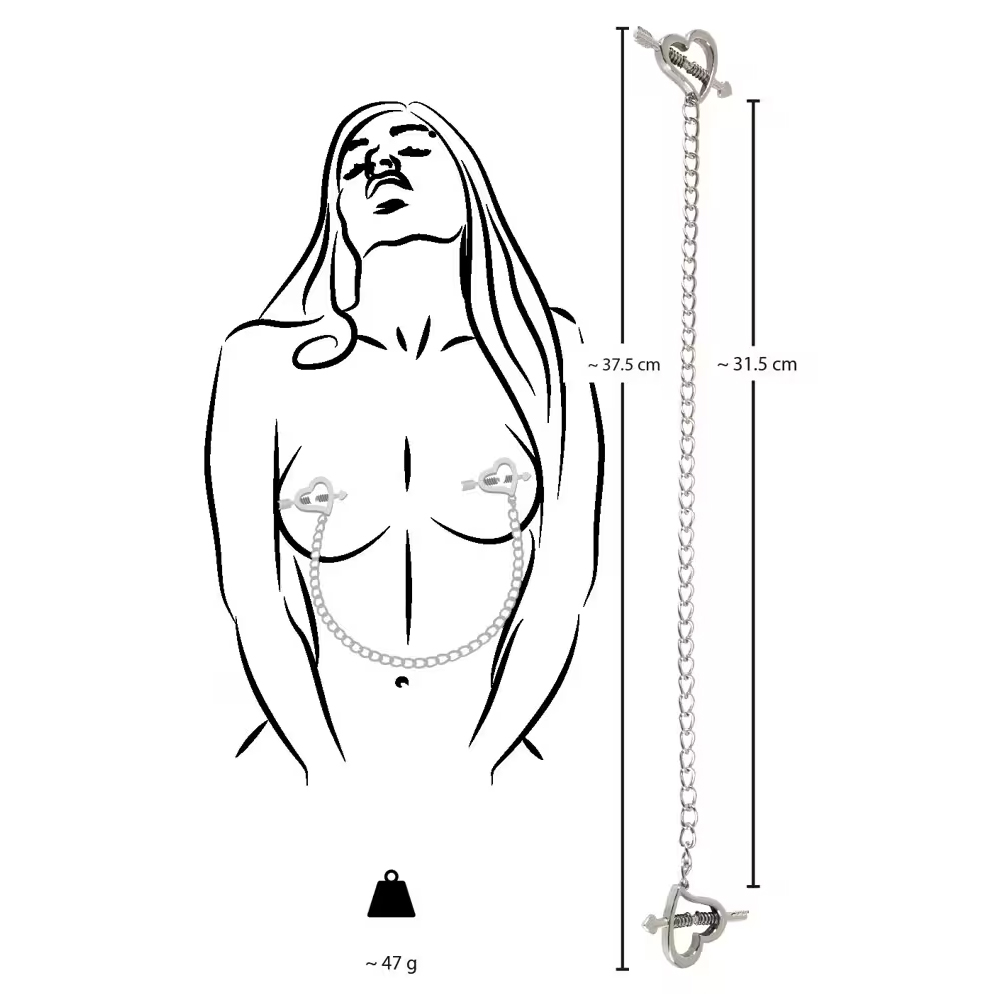 Ove stipaljke za bradavice u obliku srca iz Bad Kitty-ja štipaju bradavice i ukrašavaju njegove ili njene grudi hladnim lancem od nerđajućeg čelika. Stege od nerđajućeg čelika sastoje se od modernog srca i dve igle sa oprugom u obliku strelice koje se sastaju u sredini srca. Igle se mogu razdvojiti tako da se bradavica može postaviti između njih.