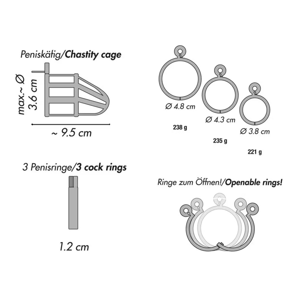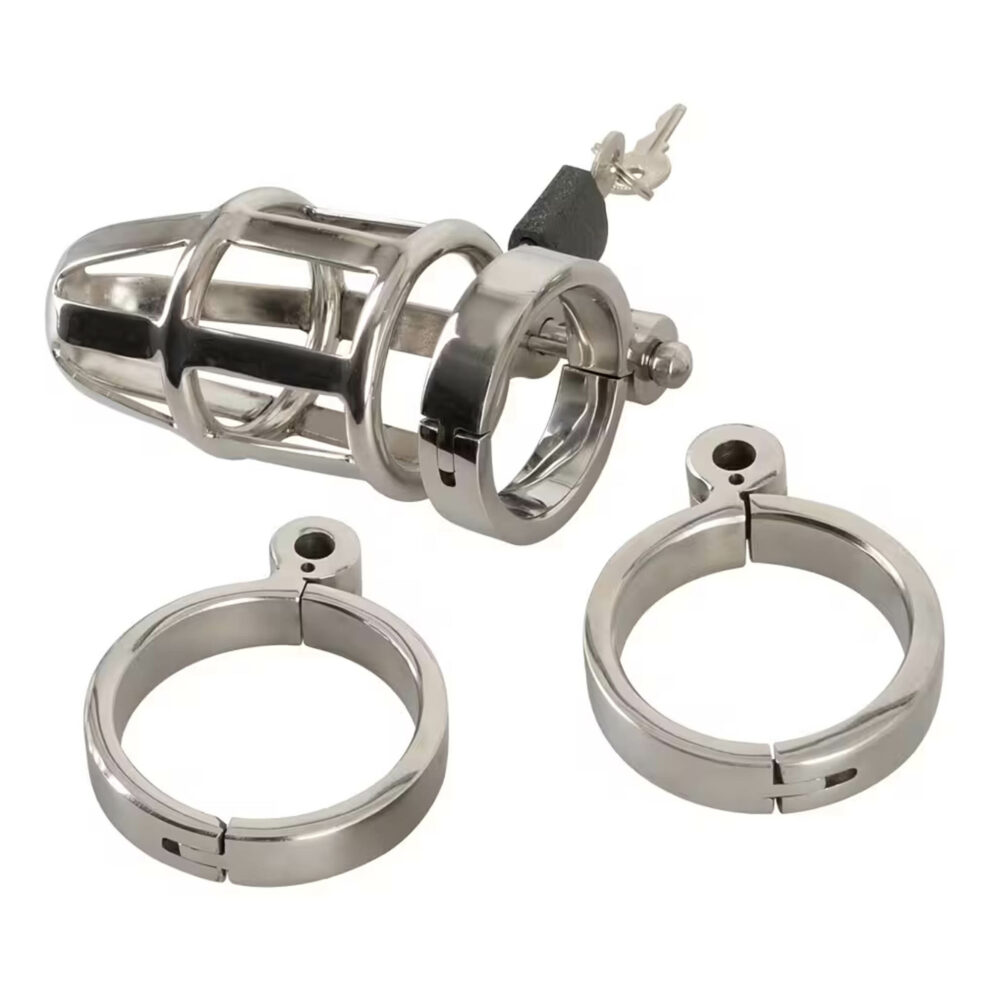 Ovaj kavez za penis olakšava održavanje čednosti roba! Čvrsto pristaje jer su uključena tri prstena različite veličine, što znači da će savršeno odgovarati svakom penisu. Uključeni katanac je takođe veoma važan i može se zaključati sa 2 ključa.