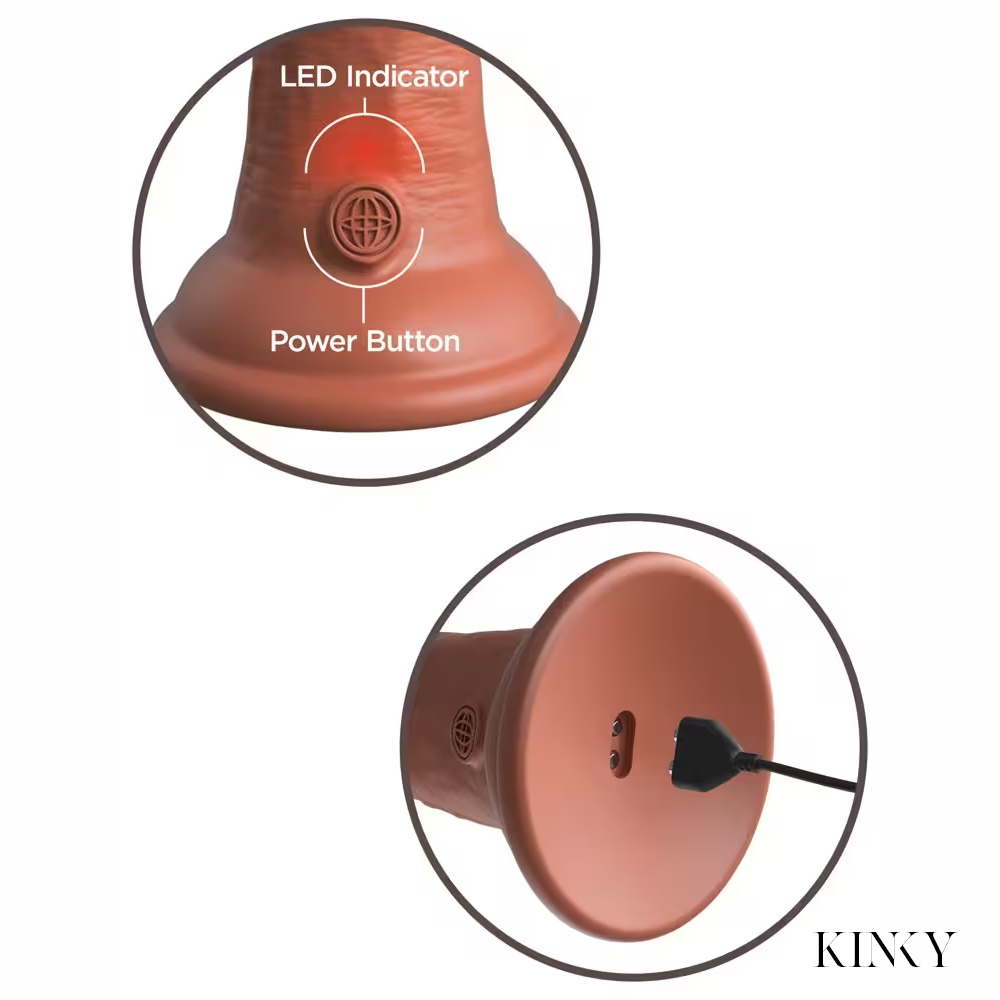 | Punjivi,realisticni vibrator 6″ King Cock Elite Dual Denisty sa hiper-realističnim izgledom penisa od silikonskog materijala dvostruke gustine koji deluje kao prava koža. Sam vibrator (kao pravi penis u erekciji) ima čvrstu, ali fleksibilnu osovinu. 10 različitih režima vibracije, koji se mogu lako kontrolisati direktno pritiskom na dugme na igrački – čak i u kadi ili pod tušem. Ima snažnu usisnu osnovu koja čvrsto i bezbedno prijanja na bilo koju glatku površinu, omogućavajući upotrebu bez ruku. Savršeno radi sa Bodi Dock univerzalnim sistemom uprtača od King Cock Elite – ali je takođe kompatibilan sa drugim konvencionalnim trakama i uprtačima. Uključuje USB kabl za punjenje magnetnog punjača. Ukupna dužina 17,8 cm, dužina umetanja 15,2 cm, Ø mak. Težina 257 g. Silicone. |