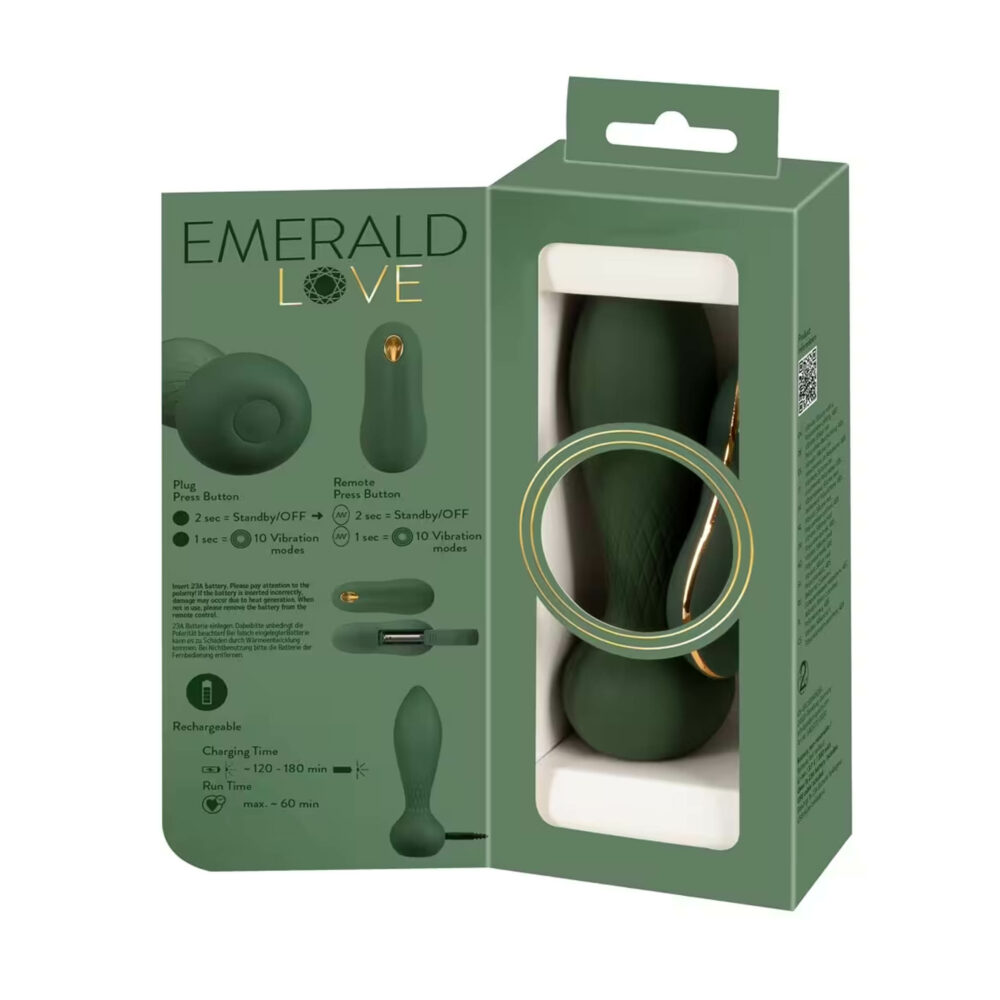 Luksuzni RC analni plag od Emerald Love by You2Toys ima snažne vibracije za duboku analnu stimulaciju. Snažan čep vibrira veoma tiho i stoga se može nositi diskretno. Baršunasto meki silikonski čep se lako ubacuje i savršeno i udobno pristaje. Luksuzni vibro-analni čep je u elegantnom smaragdno zelenom dizajnu i ima upečatljive zlatne detalje. Njegova dijamantska tekstura na dršci ga ističe, a dolazi i sa daljinskim upravljačem za lako upravljanje.