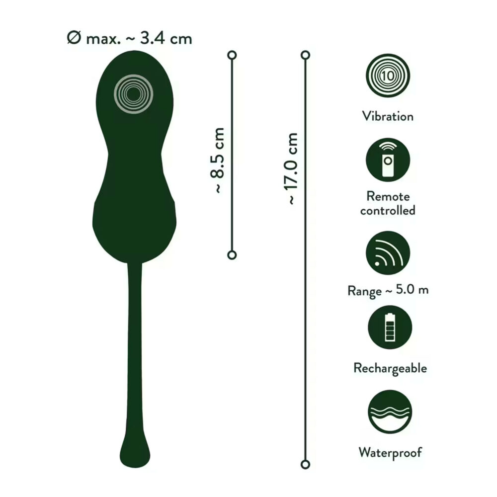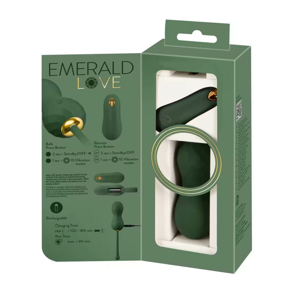 Luksuzne RC Love Balls kompanije Emerald Love od Iou2Tois savršene su za duboku vaginalnu stimulaciju i efikasan trening karličnog dna. Moćne ljubavne lopte vibriraju veoma tiho i stoga se mogu diskretno nositi. Niko neće primetiti vašu intenzivnu i intimnu tajnu! Luksuzne vibro-kegel lopte su u elegantnom smaragdno zelenom dizajnu i imaju upadljive detalje zlatne boje. Njegova dijamantska tekstura ih ističe, a takođe su laki za upotrebu.