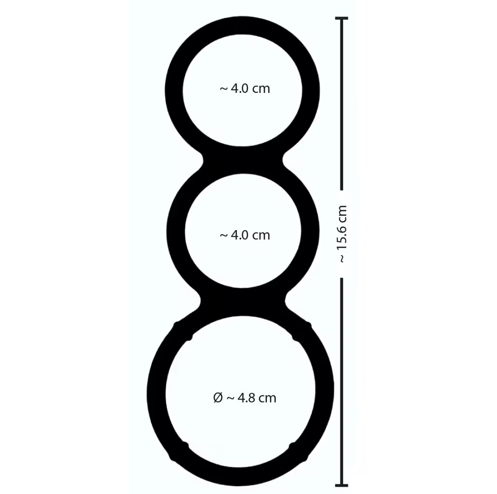 Veoma rastegljiv trostruki prsten od You2 ToYs u metalnom izgledu – ali sa udobnošću svilenkasto mekog silikona. 3 kombinovana silikonska prstena savršeno pristaju penisu i testisima, udobna su za nošenje i podržavaju dugotrajnu erekciju zahvaljujući efektu zagusenja krvi. Veoma fleksibilan, moguće je nekoliko varijacija nošenja.