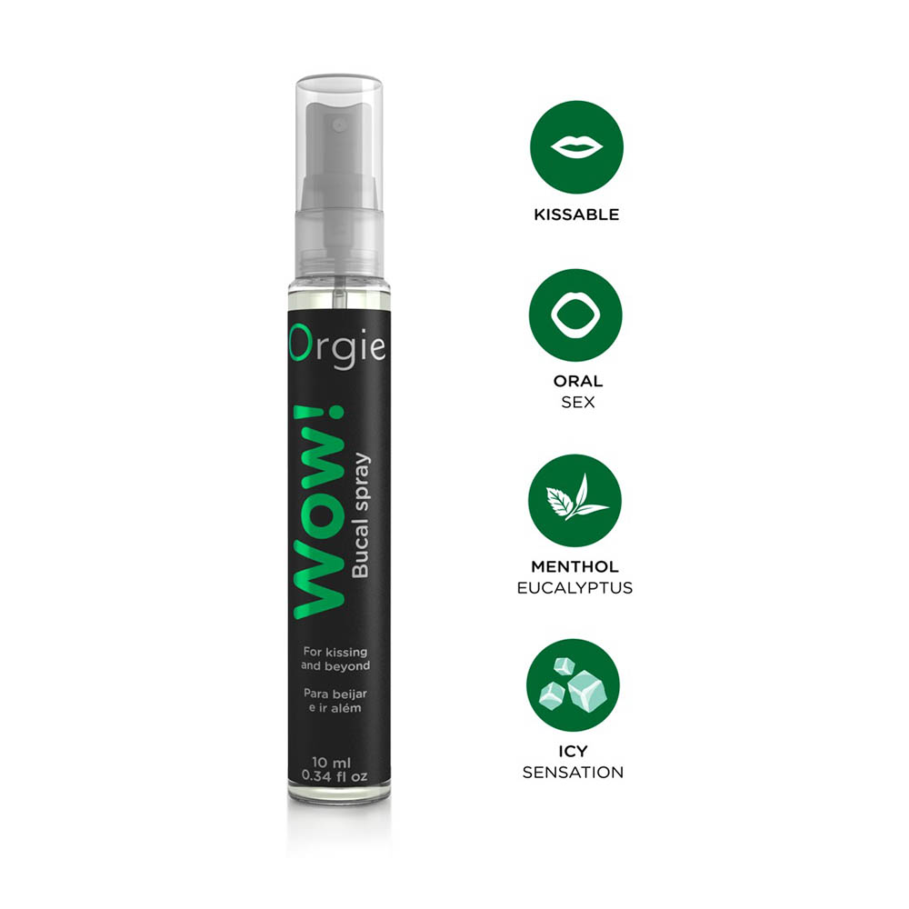 Sa svojim efektom hlađenja, „Wow! by Orgie“ sprej za usta odmah pruža prijatne hladne senzacije tokom ljubljenja i oralnog seksa.