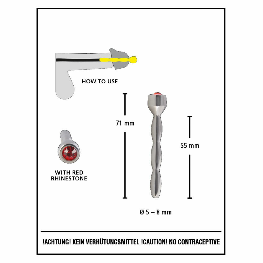 Talasasti plag za penis, srebrne boje sa crvenim dragim kamenom na vrhu.
