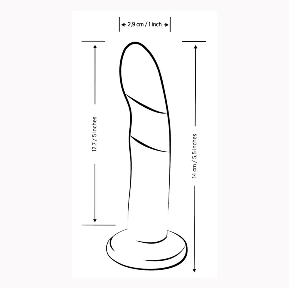 Uzbudljivo oblikovani dildo Piccolo iz ROMP-a u stilskoj boji. Sa jakom vakuumskom čašicom koja se čvrsto i sigurno lepi za bilo koju glatku površinu za zadovoljstvo bez ruku. Dildo je takođe kompatibilan sa strap-on uređajima i pojasevima. Idealno je zakrivljen tako da se G-tačka ili prostata mogu lako dosegnuti i stimulisati na ciljani način. Napravljen od svilenkasto mekog silikona, što dildu daje uzbudljivu čvrstinu i tvrdoću bez gubitka fleksibilnosti. Donja osovina je šuplja tako da se može umetnuti vibrator u obliku metka (nije uključen).
