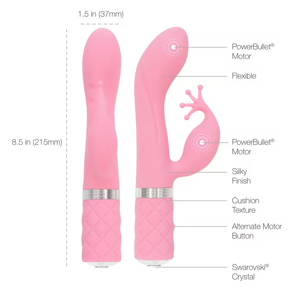 Punjivi vibrator kombinuje 2 motora sa dubokim, drhtavim vibracijama i izvanrednim stimulatorom klitorisa. Četiri mekana vrha nalik na krunu pružaju tačnu i intenzivnu stimulaciju klitorisa. Elegantno zakrivljena osovina je fleksibilna za efikasan pritisak na G-tačku. Visokokvalitetna Soft Touch tekstura čini ga veoma lakim za držanje i čini se izuzetno prijatnim.