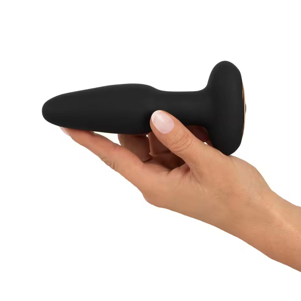 Konusni vibrirajući čep Trenažer za pritisak od ANOS-a sa osetljivim vrhom. Njegovih 7 raznovrsnih režima vibracije se lako kontroliše pritiskom na dugme direktno na graničnici. Dok je u režimu pripravnosti, jačina vibracije se može kontrolisati pritiskom analnih mišića na senzor utikača koji se nalazi na vratu – što je pritisak jači, to su vibracije intenzivnije. Za efikasan analni trening i visoko stimulativno zadovoljstvo!