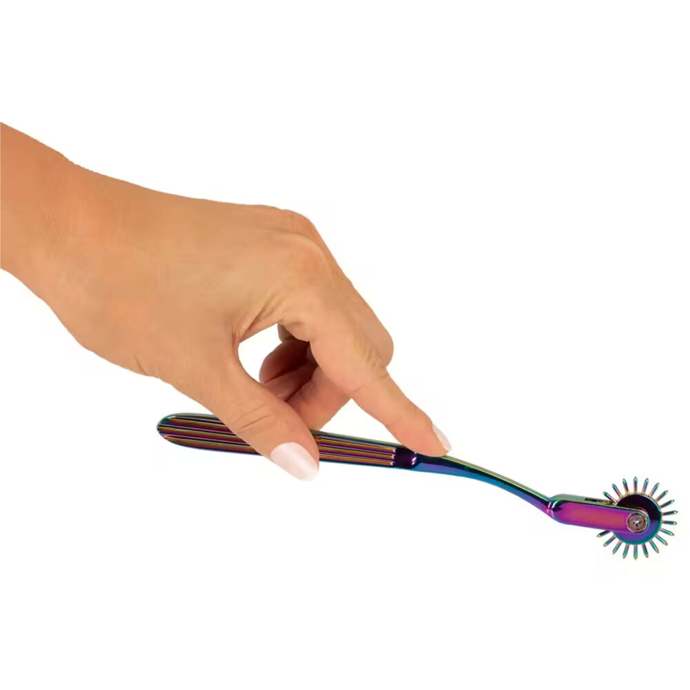 Čvrsta metalna jednostruka vetrenjača iz fetiš kolekcije u blistavim duginim bojama. Kotrlja se po koži sa većim ili manjim pritiskom, izazivajući ili nežno stimulativne senzacije ili intenzivan prijatan bol. Točak je osečan malim, veoma oštrim iglama i može se koristiti bilo gde na telu. Duga, uska drška udobno leži u ruci i obezbeđuje optimalno vođenje i potpunu kontrolu nad primenjenim pritiskom.