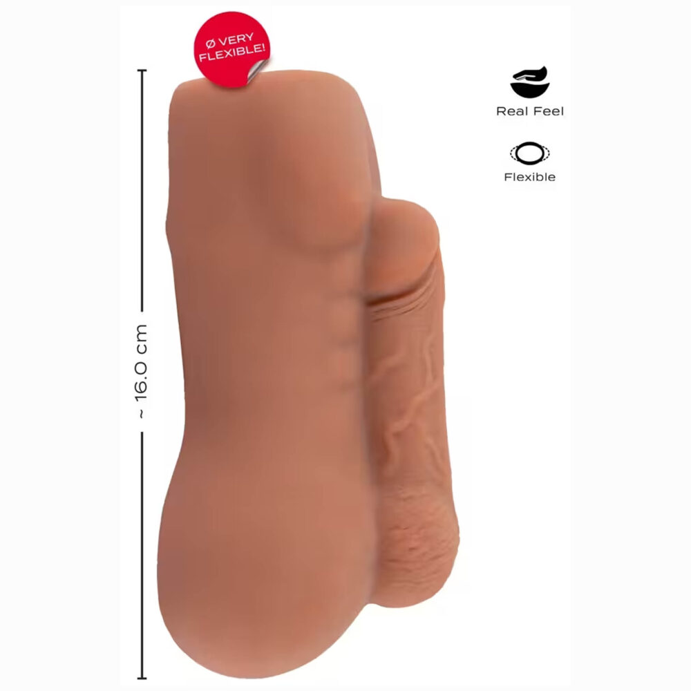 RealMan masturbator od Realistixxx pruža prijatnu analnu zabavu sa realističnim osećajima, zahvaljujući svom realističnom dizajnu anusa i penisa. Meki, realistični materijal je gladak i veoma brzo se zagreva do telesne temperature. Takođe ima uzbudljive teksture unutra koje intenzivno masiraju penis tokom drkanja. Masturbator koji se lako drži divno se uklapa u dlan i može se stisnuti za čvrst osećaj zadovoljstva.