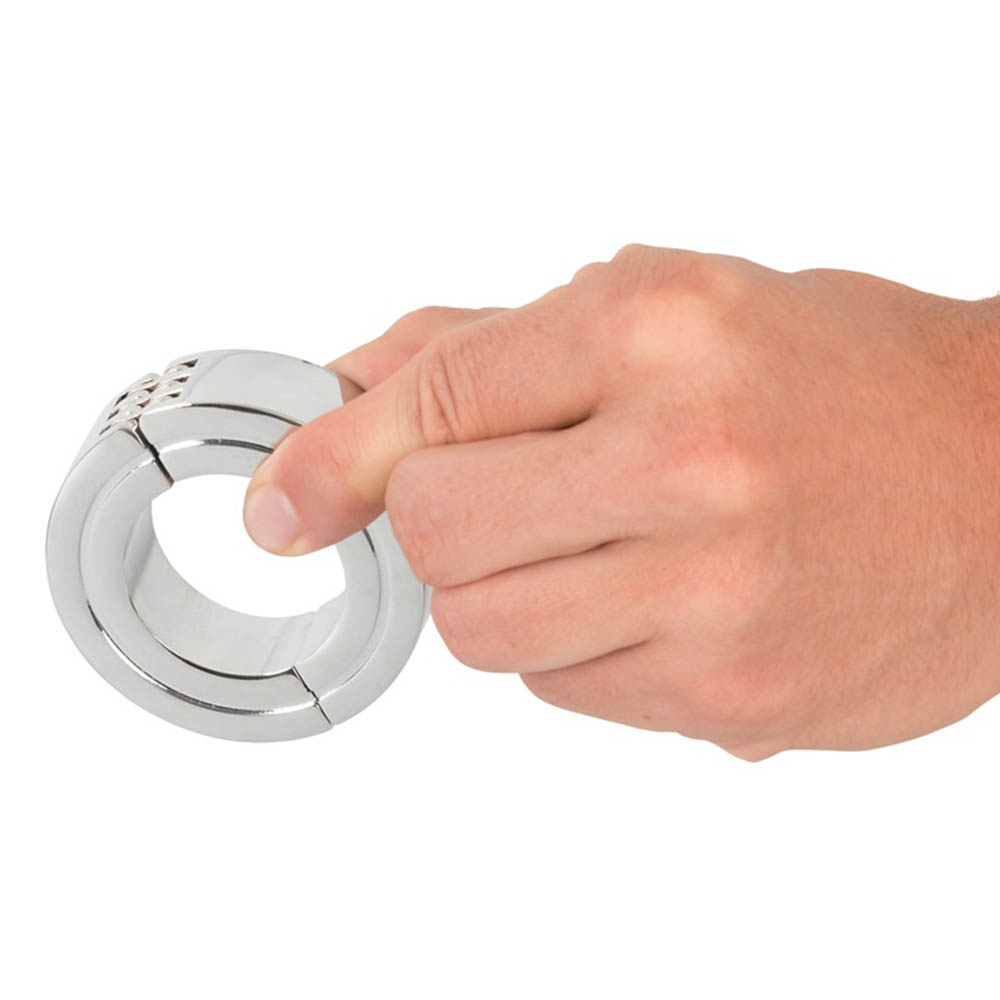 Metalni prsten za penis iz „Rebel“-a se stavlja i zatim čvrsto zaključava priloženim šestougaonim ključem.