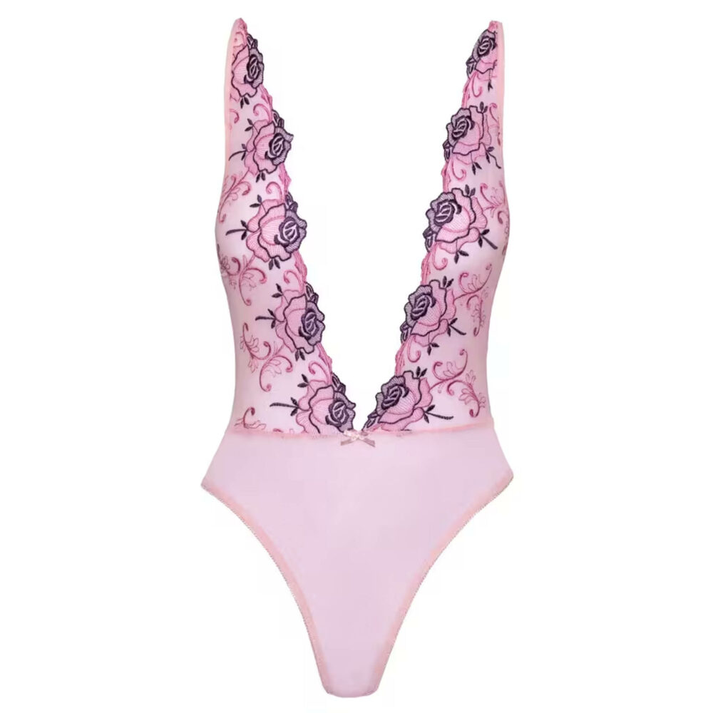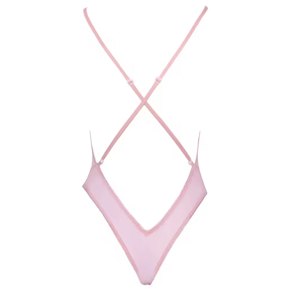 Bodi sa veoma dubokim dekolteom od kissable je napravljen od nežne ružičaste mreže i razrađenog cvetnog veza. Mekan je i rastegljiv, što znači da je izuzetno udoban za nošenje. Bodi takođe ima podesive ukrštene bretele na leđima.
