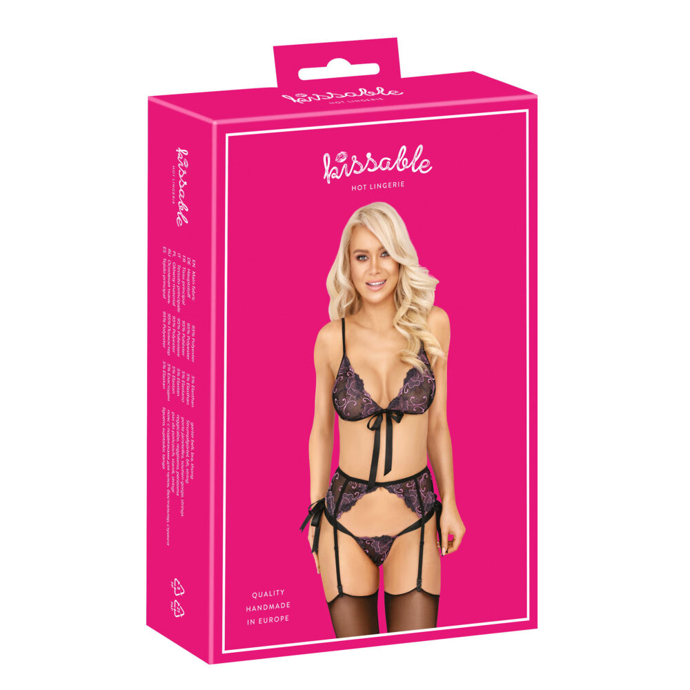 ovaj prelepi seksi crni cipkani veš sa halterima dolazi sa roze detaljima koji daju posebnu dozu senzualnosti i elegancije vašem izgledu. Savršeno mekana čipka koja ističe obline i dodaje leposti i seksipilu!