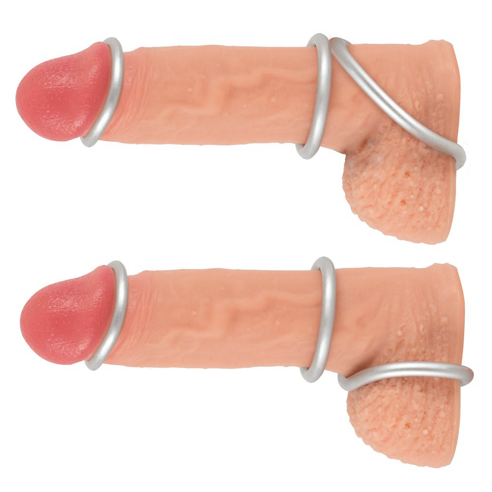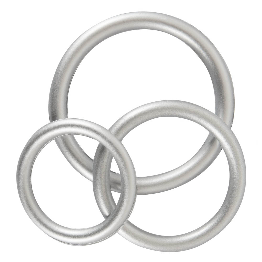 Set od tri prstena za penis/testise različitih veličina napravljenih od silikona za udobnost i sigurnost.