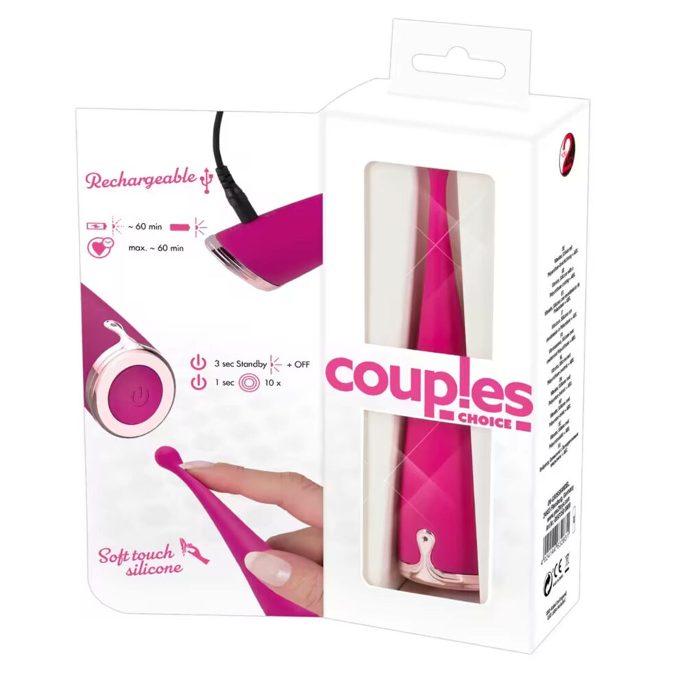Ovaj vibrator od Couples Choice pruža tačno zadovoljstvo! Vibrator uvek doseže pravo područje koje treba stimulisati svojim okruglim i uskim vrhom – bilo da su to bradavice, klitoris, P-tačka, perineum ili anus. Dužina vrha tačkastog vibratora uvek brzo doseže cilj i kada se jednom nađe tamo, zadovoljava područje sa svojih 10 režima vibracije i baršunasto mekom površinom. Uključuje USB kabl.