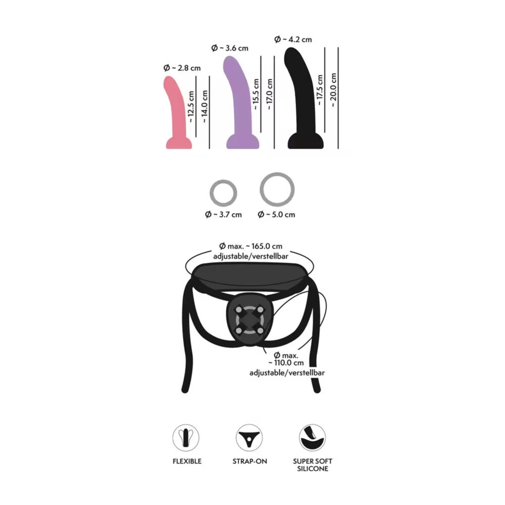 Strap-on Collection od you2Tois, ima pojas i 3 dildoa različite veličine (S, M, L). Svaki dildo ima usisnu čašu, što znači da se može brzo i lako umetnuti u podesivi pojas i/ili zameniti. Ovaj dildo se takođe može koristiti za solo zabavu. To je svestran set za različite stimulacije – sami ili sa partnerom!