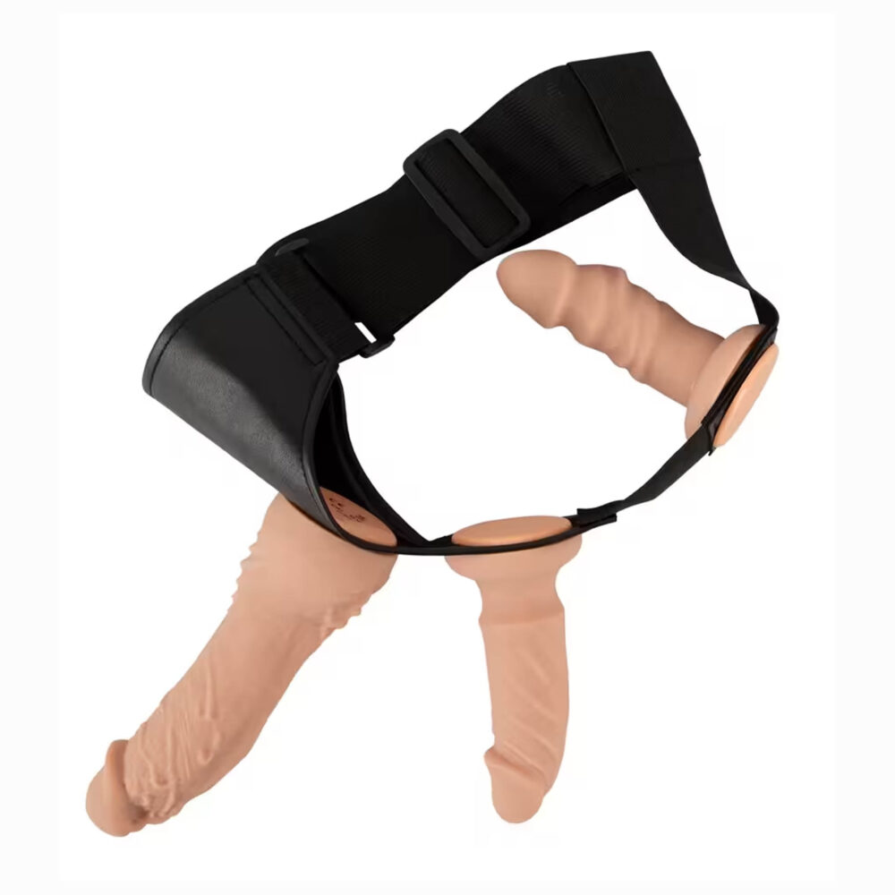Set strap-on iz Your Strap-On kolekcije od You2Toys sa podesivim strap-on pojasom, realističnim vibratorom uključujući daljinski upravljač i 2 različita realistična dilda. Vibrator i dildi se mogu lako pričvrstiti na unutrašnju i/ili spoljašnju stranu pojasa. Korisnik je razmažen vaginalno i analno istovremeno – i može snažno da tera spoljašnjim dildom. Udvostručite i utrostručite zabavu za dvoje!