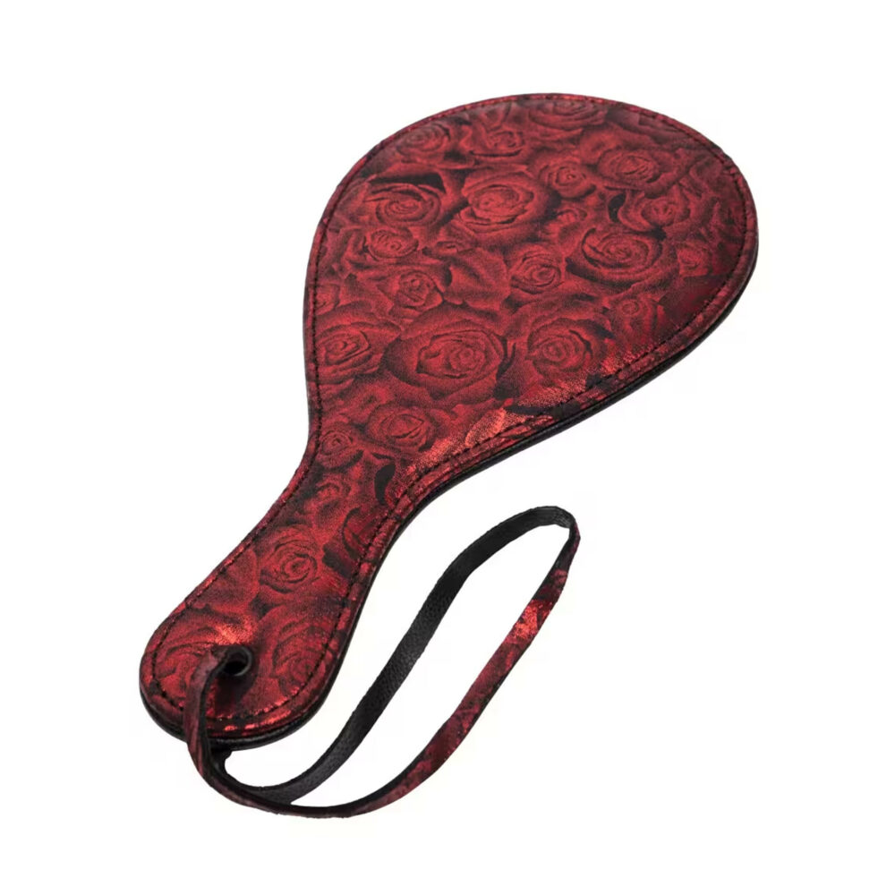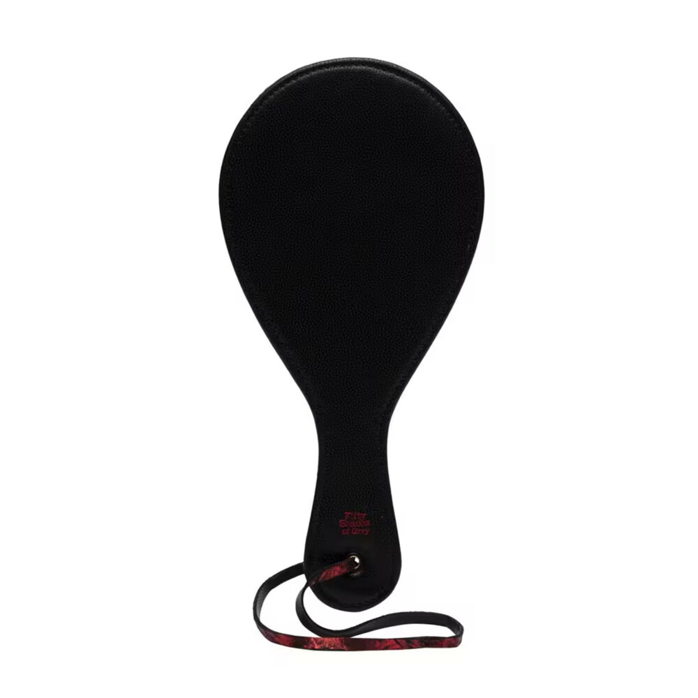 Visokokvalitetna lopatica za udaranje Sweet Anticipation lopatica iz Pedeset nijansi sive sa dve različite teksturne strane za različite senzacije: jedna strana je u izgledu crne kože sa grubom teksturom, druga strana je glatka i u dizajnu crno/crvene satenske ruže.