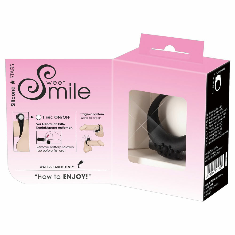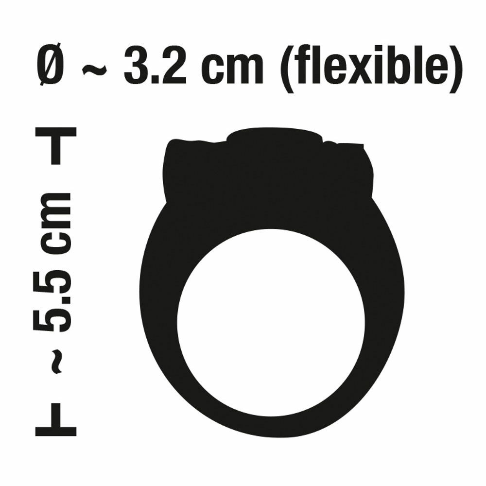 Crni prsten za penis, savresno prijanja oko penisa, dok uključeni, uklonjivi mini vibrator (dugme za uključivanje/isključivanje) pruža stimulaciju.