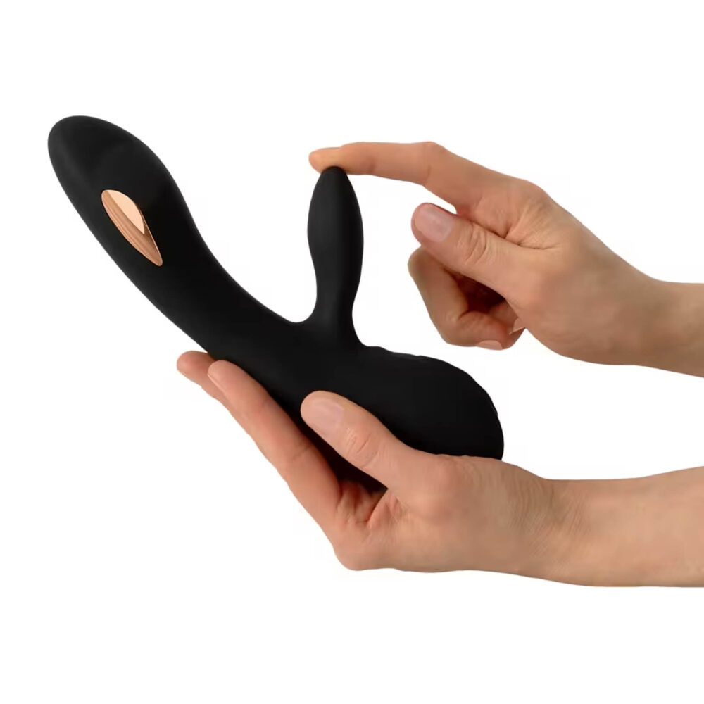 Luksuzni E-Stim vibrator Zec od XOUXOU za električne orgazme puta 3: peckajući električni impulsi u blago fleksibilnoj osovini pružaju intenzivnu stimulaciju vagine i G-tačke, dok uzbudljive vibracije u stimulatoru klitorisa zadovoljavaju njen klitoris.