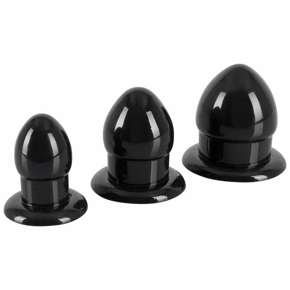 Tri sjajna, crna anal plaga u kompletu. Svaki plag ima bazu.