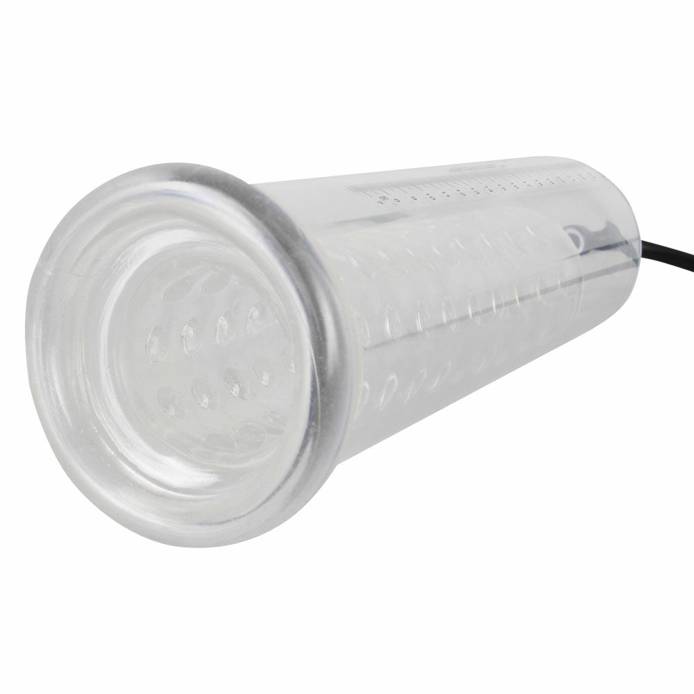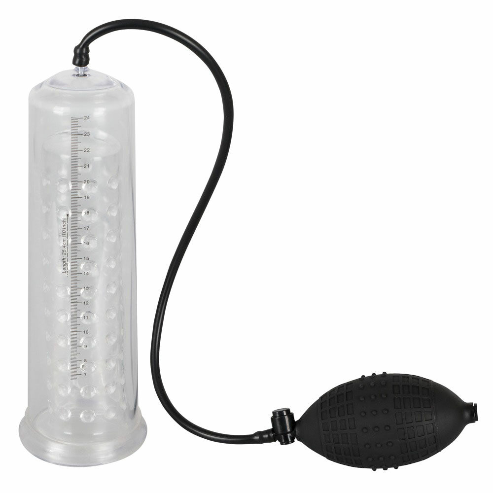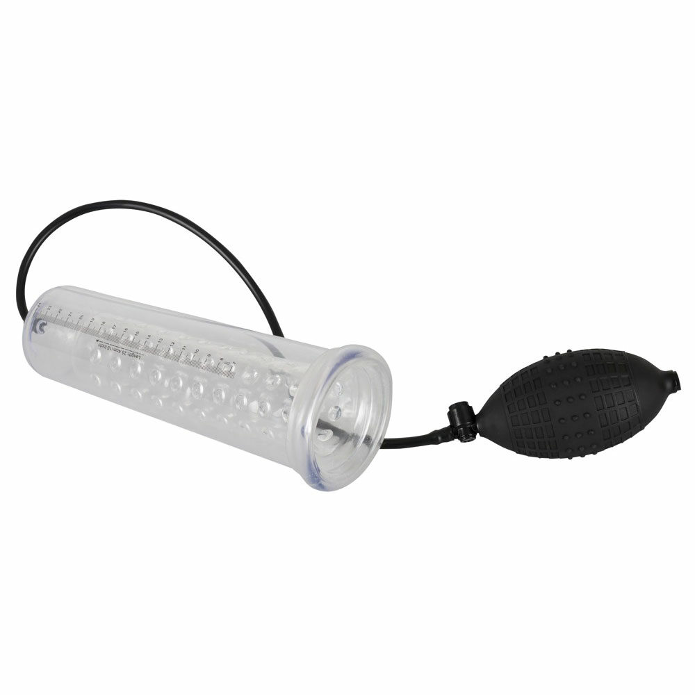 Prozirna pumpa za penis, sa unutrašnjom čahurom (Ø 4,5 cm fleksibilna, dužina oko 20 cm) i zgodnom kuglicom za pumpanje.