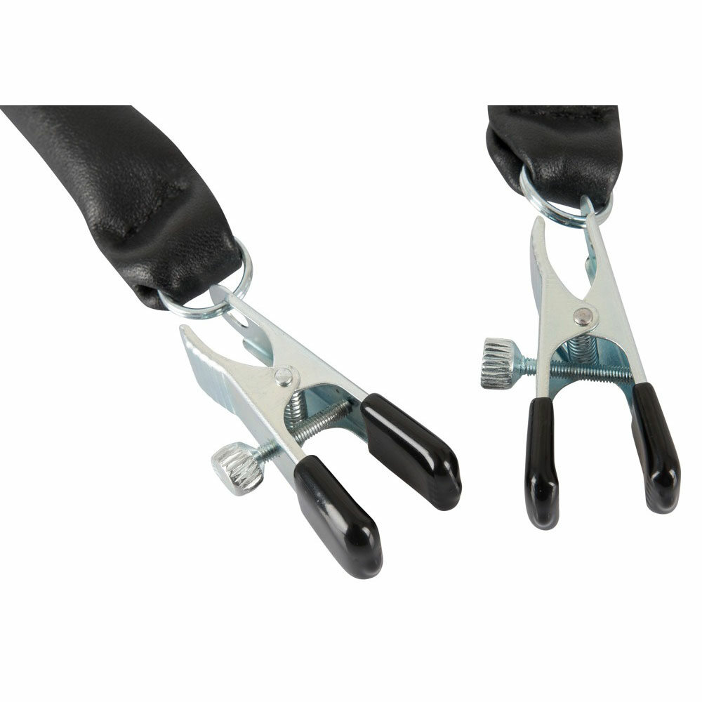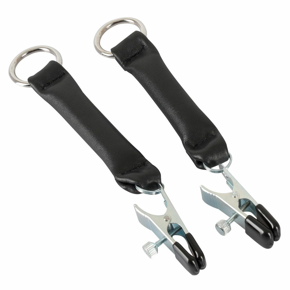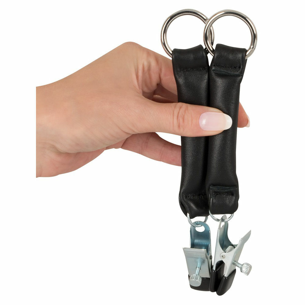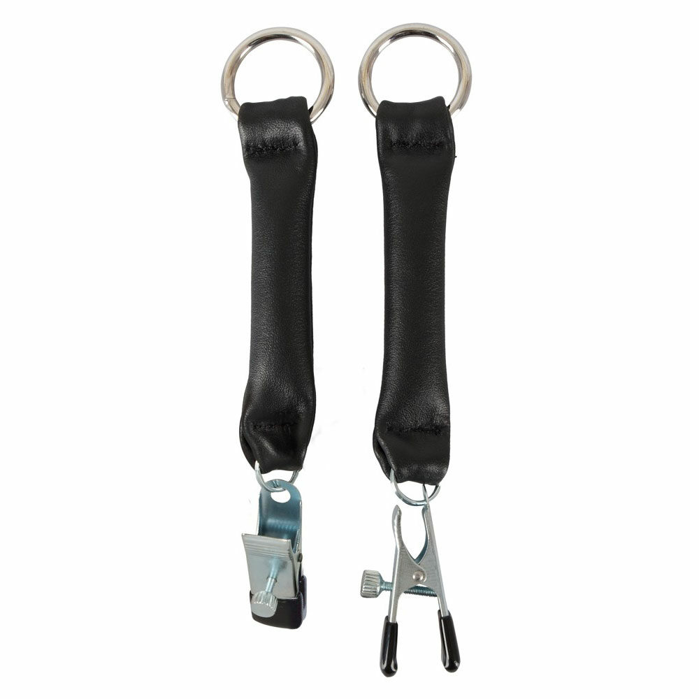 Stipaljke za bradavice sa kožnim kaiševima, i metalnim prstenovima.